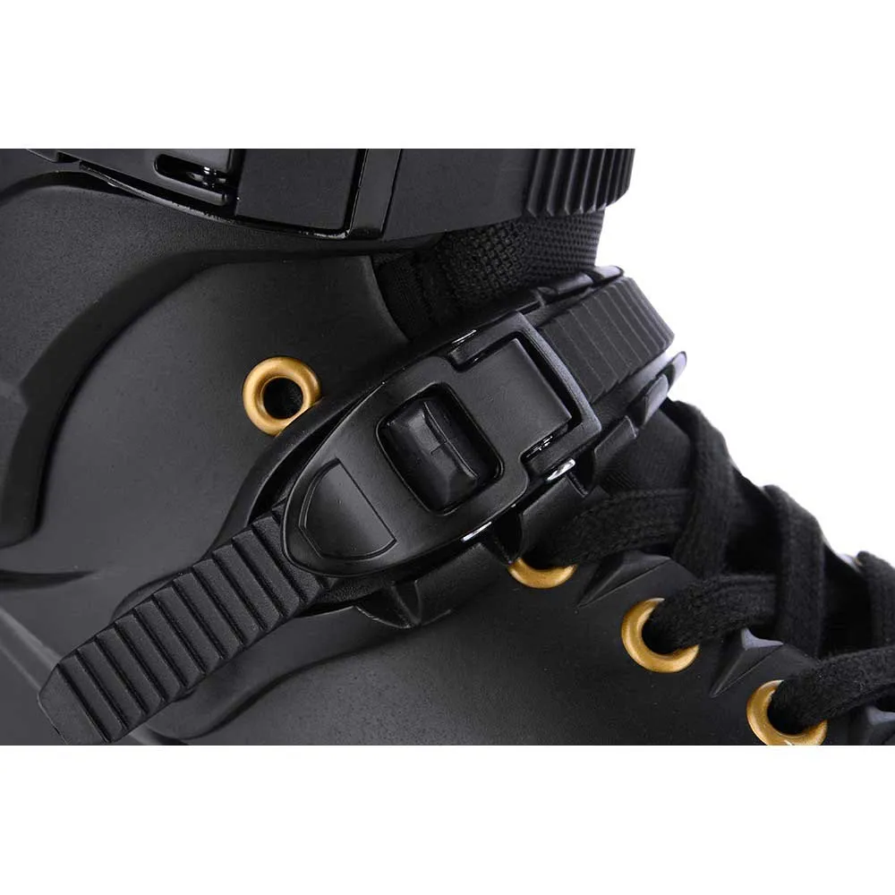 Skeletet på skøjten er godt ventileret - ventilation når foden takket være en ventileret liner, der indeholder huller rundt om hele sin omkreds, inklusive tungen. En skrue med en speciel møtrik og skive bruges i skøjteleddet, takket være hvilken manchetten er udskiftelig og kan strammes om nødvendigt, det garanterer også en længere levetid end den leddelte nitte. Den øverste metalspænde med selvlukning har en bøjning i enden for et bedre greb. Stroppen er indsat i skeletet, så den ikke hænger fast i den anden skøjte under slalom og freestyle, spænden selv er beskyttet mod beskadigelse af den nederste plastikboss. Riststroppen er udstyret med en enkelt-trins mikrospænde med meget komfortabel stramning og løsning takket være skraldesystemet. Snørebåndene er voksede, mindre glatte og gør fastgørelse lettere.
