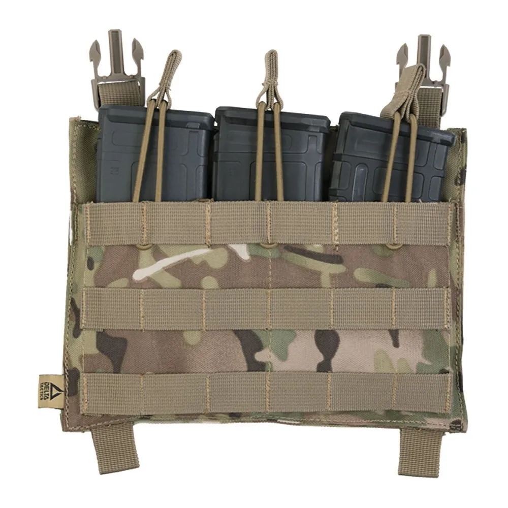 Delta Tactics vorkonfigurierte Frontplatte mit männlichen Clips mit 3 Schnellwechseltaschen mit Klemmgummi am Oberteil für drei AR, G36, AK.