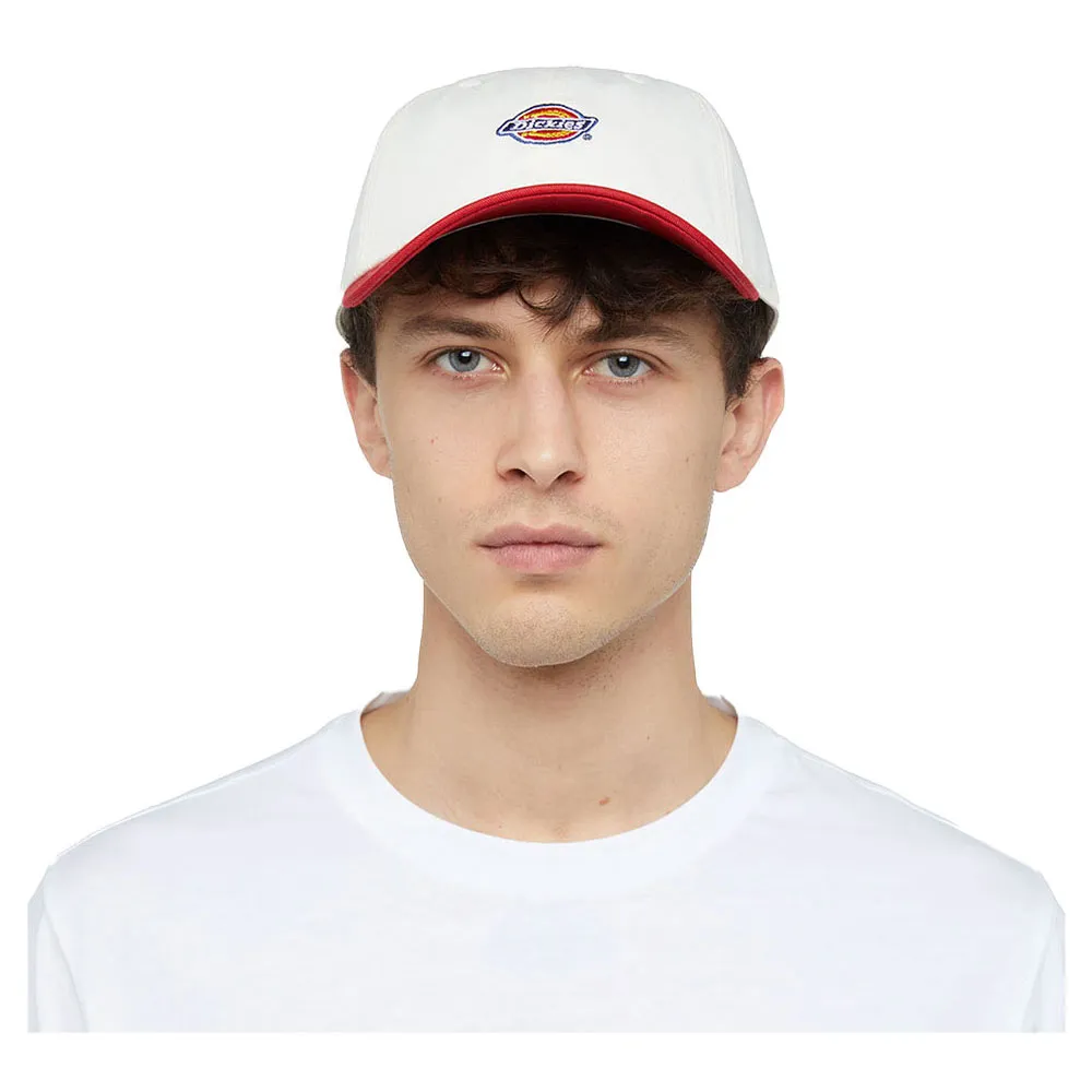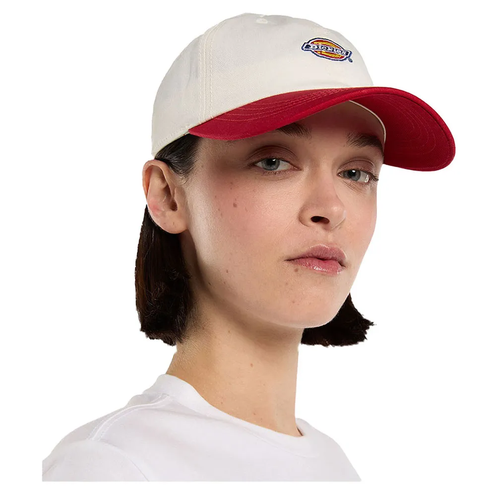 Hergestellt aus strapazierfähigem Baumwollköper mit Druckknopfverschluss, zweifarbiger Paneelung, Steppnaht am Schirm und klassischer Dickies-Logostickerei auf der Vorderseite.