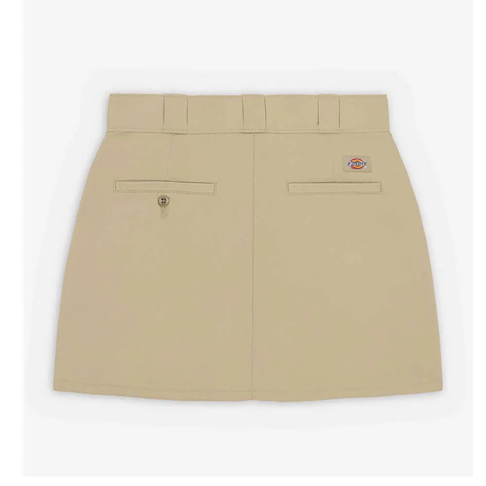 Ein hoher Mini mit Reißverschluss, Gürtelschlaufen, Seitennahttasche, Knopfleistentaschen auf der Rückseite und ikonischem gewebten Dickies-Label.