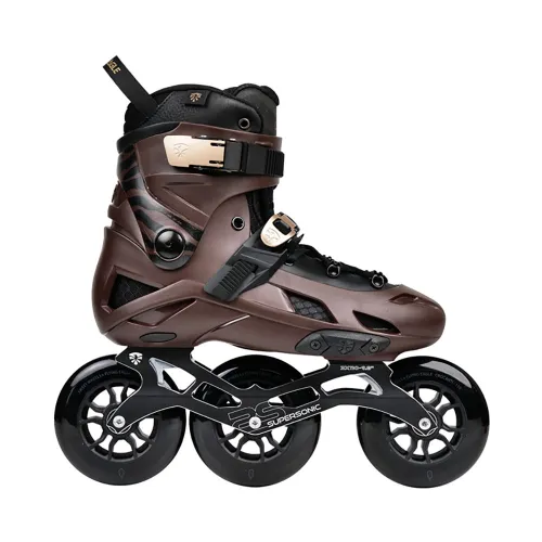 Die Konfiguration wird durch einen Stoßdämpfer in der Ferse, hochwertige CNC-gefräste SUPERSONIC Pro 3-Rollen-Schienen aus Aluminium und 110-mm-Super-High-Rebound (SHR) Crocanti-Räder mit ABEC 9 Pro-Lagern vervollständigt.