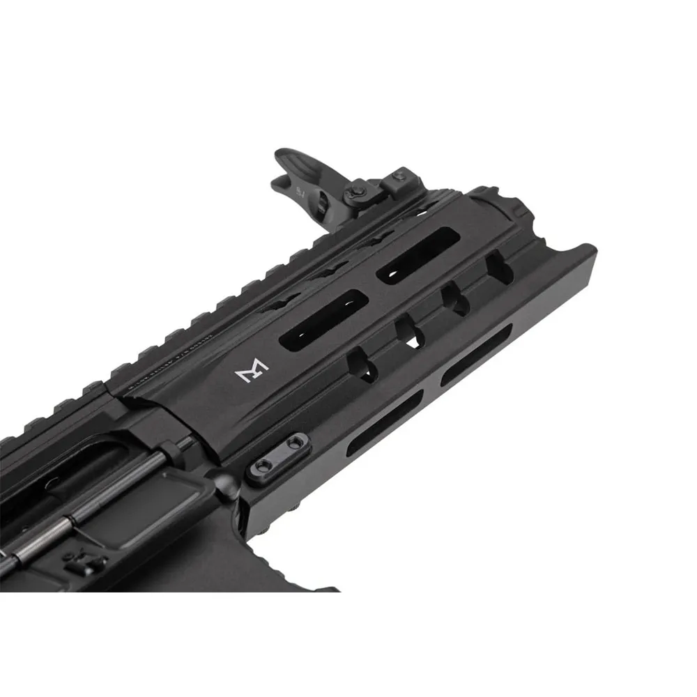 An der Vorderseite finden wir einen Aluminium-M-LOK-Handschutz mit einer RIS-Schiene an der Oberseite.