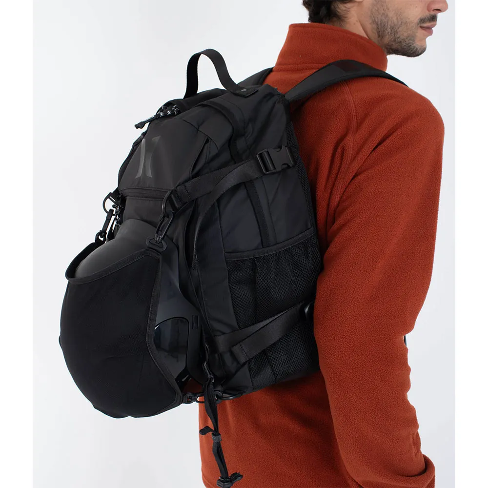 Entwickelt für Action, bietet dieser Rucksack eine Netztasche zur sicheren Aufbewahrung deines Helms, zusammen mit einer großen Fronttasche mit Reißverschluss und seitlichen Netzfächern für wichtige Dinge. Verstellbare Kompressionsriemen ermöglichen eine individuelle Anpassung, während gepolsterte Schultergurte für dauerhaften Komfort sorgen. Abgerundet mit einem Hurley-Logo-Detail auf der Vorderseite.