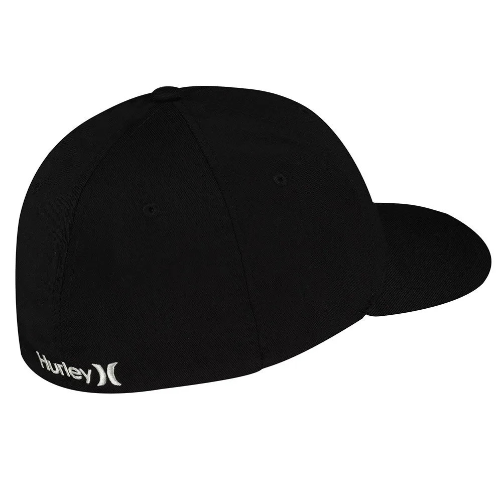 Der Hurley One and Only Hat hat einen 6-Bahnen-Stretch mit gebogenem Schirm und Stickereien auf Vorder- und Rückseite.