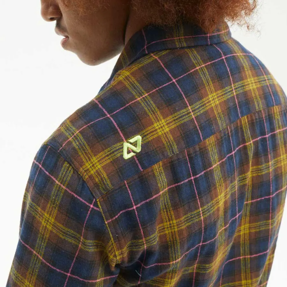 Langärmliges Flanellhemd / Holzknöpfe / Garngefärbtes Karomuster.