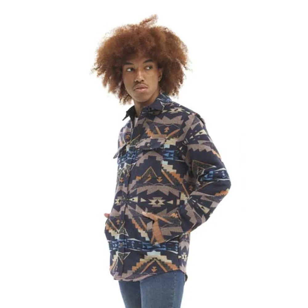 Diese dicke Flanell-Hemdjacke mit indianischen Details ist ein Multifunktionskleidungsstück mit einem sehr weichen und warmen Stoff, der Sie von der Masse abheben lässt.