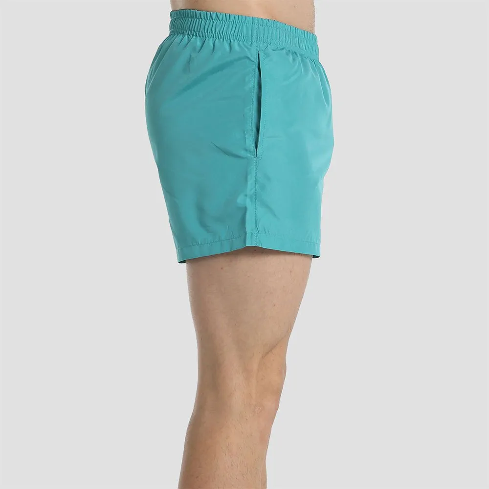LEICHTE BADESHORTS AUS POLYESTER-MIKROFASER MIT KLEINEM GRAFIK-DESIGN.