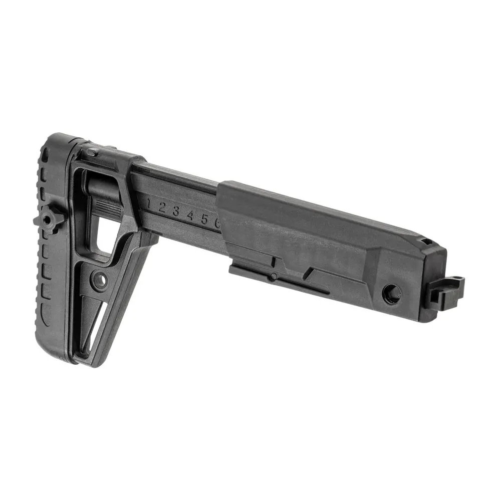 Anpassbare Passform für jeden Bediener: Mit seinem mehrfach verstellbaren Teleskopdesign können Sie die Schaftlänge sofort anpassen. Dies gewährleistet eine perfekte Passform unabhängig von Ihrer Körpergröße oder der Dicke Ihrer taktischen Ausrüstung, wie z. B. Plattenträgern, was zu einer verbesserten Anschlagsgeschwindigkeit und Komfort führt.