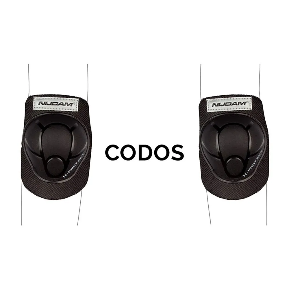 Inhalt 1 Paar Handgelenkpolster, 1 Paar Ellbogenschützer, 1 Paar Knieschützer.