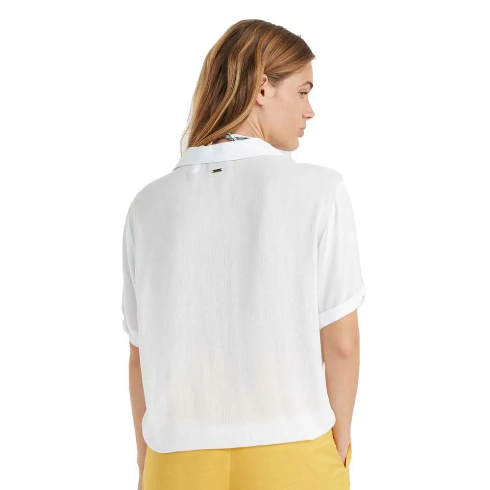 Die wahre Schönheit dieses schlichten Kurzarmhemdes liegt in seinen endlosen Styling-Möglichkeiten. Sein minimalistisches Design dient als perfekte Leinwand für Ihren persönlichen Stil. Tragen Sie es offen über Ihrem Lieblings-O´Neill-Bikini als raffinierten Strand-Cover-up, oder knöpfen Sie es zu und kombinieren Sie es mit Denim-Shorts für einen klassischen, lässigen Tageslook. Der verspielte geknotete Saum verleiht einen Hauch von modernem Flair, der die Silhouette aufwertet und sieht genauso gut aus zu einem fließenden Maxirock oder einer weiten Leinenhose für einen Abendspaziergang entlang der Promenade. Der offene Hemdkragen umrahmt den Ausschnitt wunderschön und verleiht ein gepflegtes und doch entspanntes Finish. Seine leichte Beschaffenheit macht es zu einem idealen Reisebegleiter, leicht zu verpacken und bereit für jedes Abenteuer, das auf Sie zukommt.