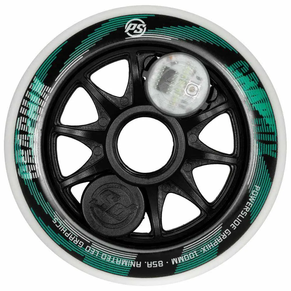 Diese neuen Powerslide Graphix 100 LED-Räder in weißer Farbe werden Ihre Fahrt erhellen, aber nur, wenn Sie es wollen.