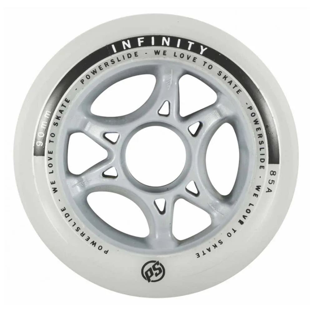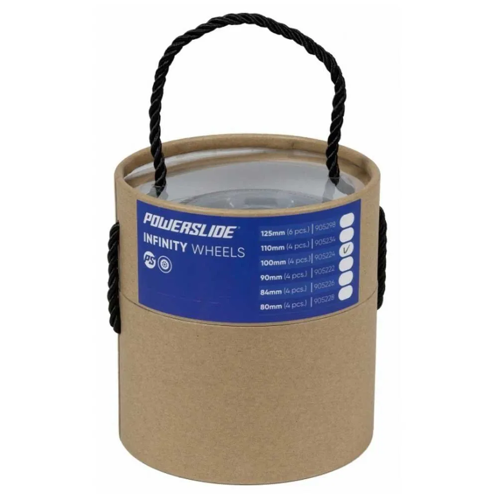 Die Infinity-Räder verwenden Powerslides Race Performance (RP)-Qualitäts-Polyurethan (PU) für glattes und schnelles Rollen und lang anhaltende Leistung.