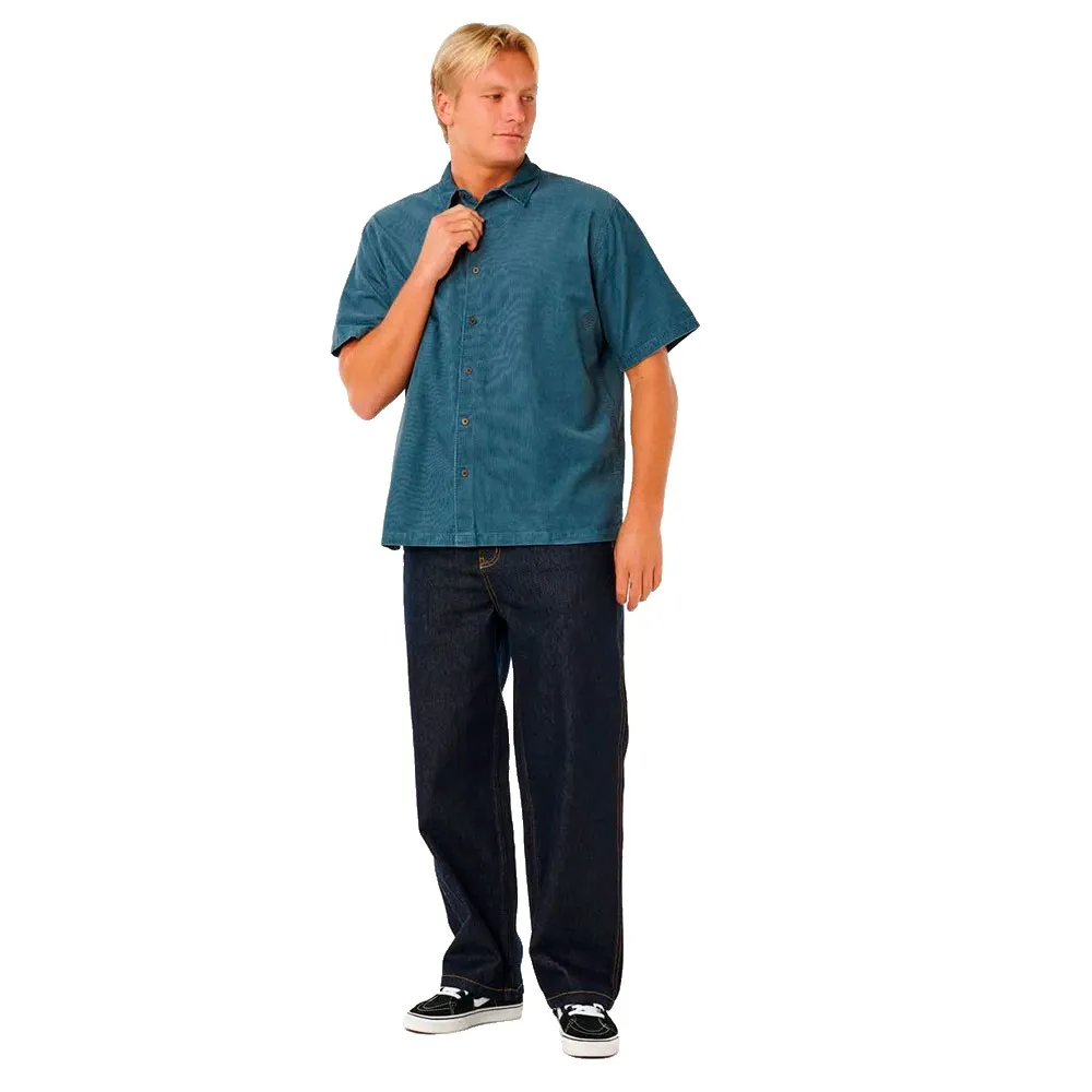 Die Pigmentfärbung und das gestickte Logo verleihen dem Premium Surf Cord Kurzarmhemd seinen Retro-Surf-Look, abgerundet mit einer lockeren Passform für Küstenabenteuer.