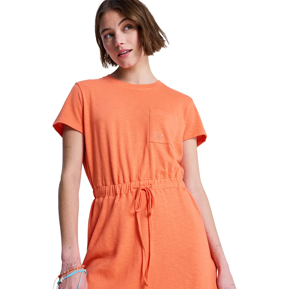 Material: Baumwoll-Polyester-Slub-Jersey-Mischung (175 g/m2), Passform: Kurzarm-Fit-and-Flare-Kleid, Ausschnitt: Rundhalsausschnitt, Sportliches Taillenband, ROXY-Herzstickerei auf der Brusttasche.