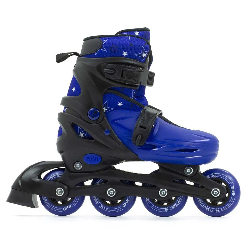 Plasma, erhältlich in 4 Farben, ist ein in der Freizeit verstellbarer Inline-Skate, der perfekt für Anfänger geeignet ist. Sein Design ist hell und universell mit einem sich wiederholenden Muster von Sternen.