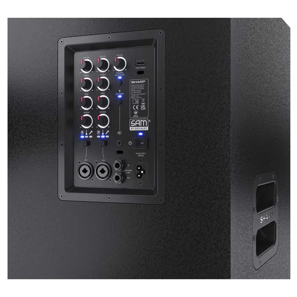 Entfesseln Sie kolossalen, raumfüllenden Klang mit dem Sharp SumoBox Pro CP-LS200, dem ultimativen Hochleistungs-Party-Lautsprecher, der entwickelt wurde, um das Herzstück jeder Veranstaltung zu sein. Entwickelt für diejenigen, die keine Kompromisse bei der Audioqualität eingehen wollen, liefert der SumoBox Pro eine beeindruckende RMS-Leistung von 200 Watt, die sicherstellt, dass jeder Beat gefühlt und jede Note mit atemberaubender Klarheit gehört wird, egal ob Sie sich drinnen oder im Freien befinden. Im Kern wird dieser Lautsprecher von der SAM® (Speaker Active Matching) Technologie von Devialet angetrieben, einer revolutionären Audioinnovation, die eine beispiellose Bassleistung und Klangtreue gewährleistet. Diese ausgeklügelte Verarbeitung ermöglicht es den beiden 10-Zoll-Tieftönern und den beiden 3-Zoll-Hochtönern, den Klang mit außergewöhnlichem Reichtum und Tiefe wiederzugeben, frei von Verzerrungen, selbst bei maximaler Lautstärke.