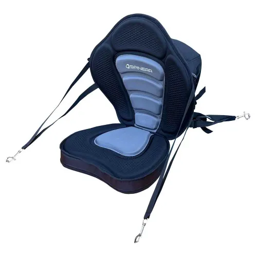 Spinera Raised Performance Sitz für SUP und Kajak. Sehr bequem, starke und steife Rückenlehne, universelle Passform, 4 verstellbare Gurte, abnehmbare Tasche an der Rückenlehne.