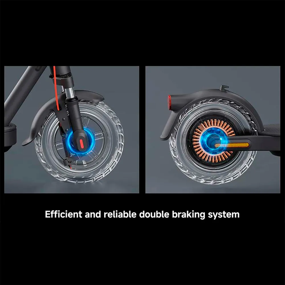 Das herausragende Merkmal ist sein revolutionäres Dual-Federungssystem. Zum ersten Mal in einem Xiaomi Scooter sind sowohl die Vorder- als auch die Hinterräder mit fortschrittlichen Stoßdämpfern ausgestattet, die rauen Asphalt, Kopfsteinpflaster und unebene Wege effektiv ausgleichen. Dies gewährleistet einen unvergleichlichen Fahrkomfort, reduziert Vibrationen und Ermüdung, sodass Sie erfrischt und kontrolliert an Ihrem Ziel ankommen.