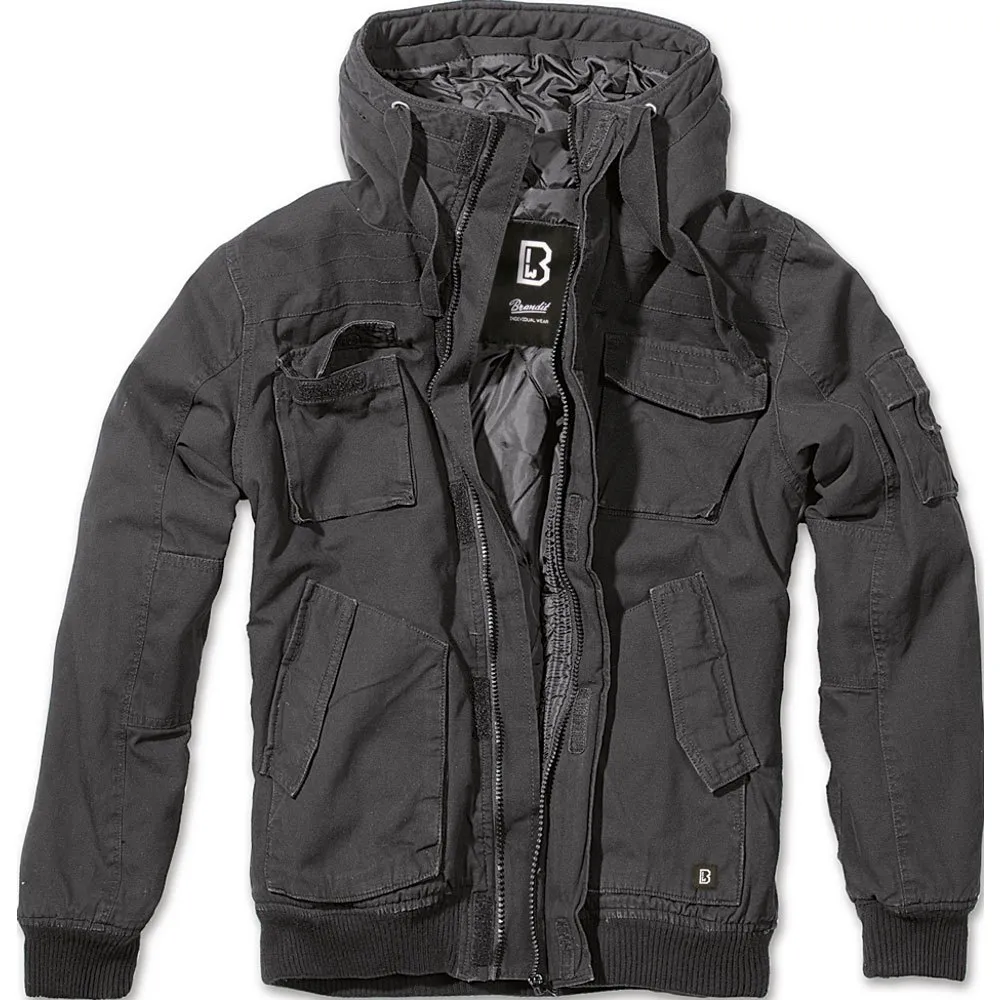 Experience the perfect fusion of vintage style and modern comfort with the BRANDIT Bronx Jacket. Inspired by classic flight jackets, its durable outer shell and warm, quilted inner lining offer exceptional protection from wind and chill. A large, cozy hood provides extra shelter, while multiple zippered pockets keep your essentials secure. Finished with elasticated cuffs and a ribbed hem for a snug, draft-free fit, this jacket is the ultimate statement of rugged elegance and everyday practicality for the contemporary man