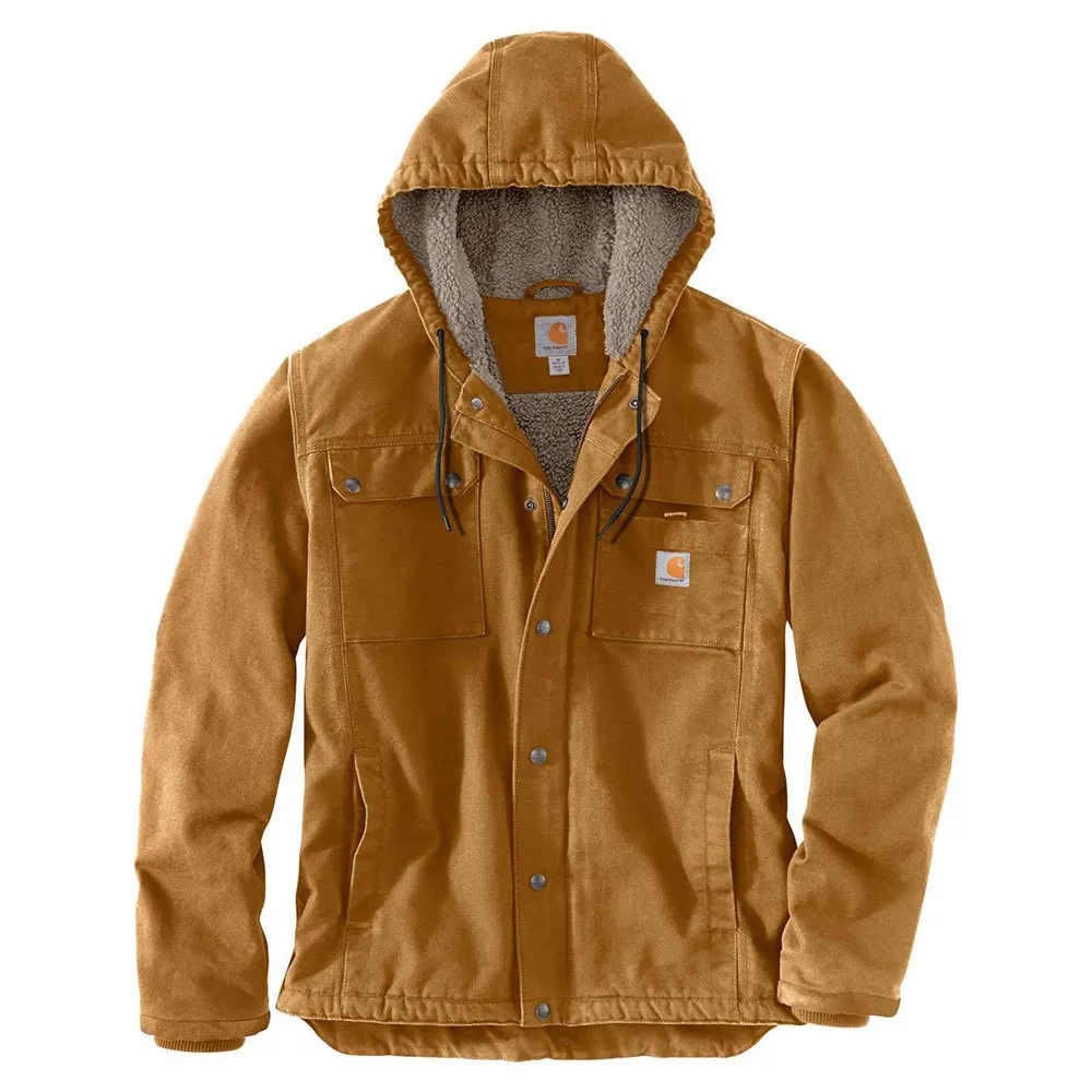 Experience the perfect blend of rugged workwear and everyday style with the Carhartt Bartlett Jacket. Its heavyweight washed duck canvas shell delivers legendary durability and wind resistance, while the clean silhouette transitions effortlessly from the job site to the city. Stay protected with an adjustable hood and a full-zip front with a storm flap. Ample pocket storage keeps essentials secure, making this the ultimate versatile jacket that brings Carhartt´s heavy-duty performance into your daily life