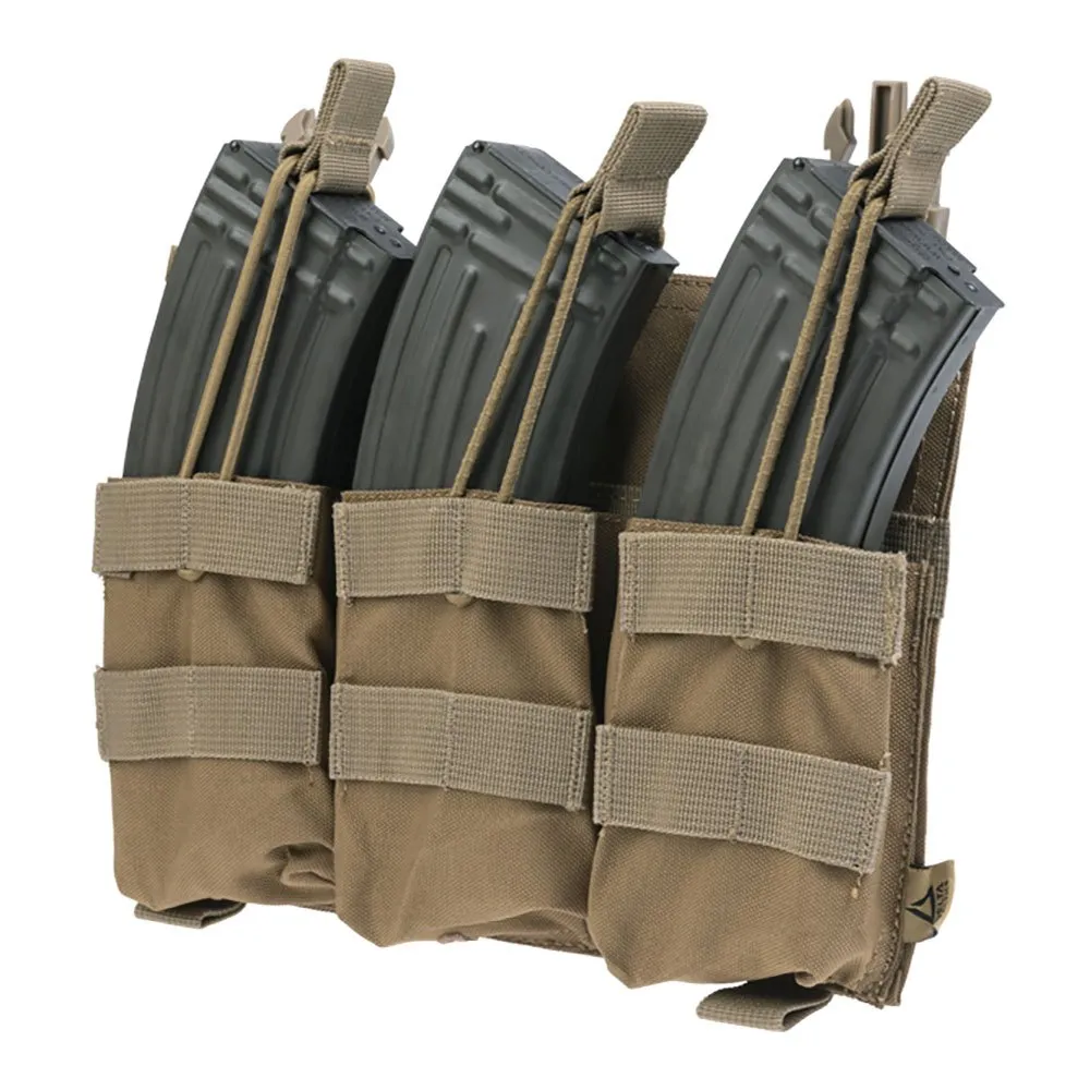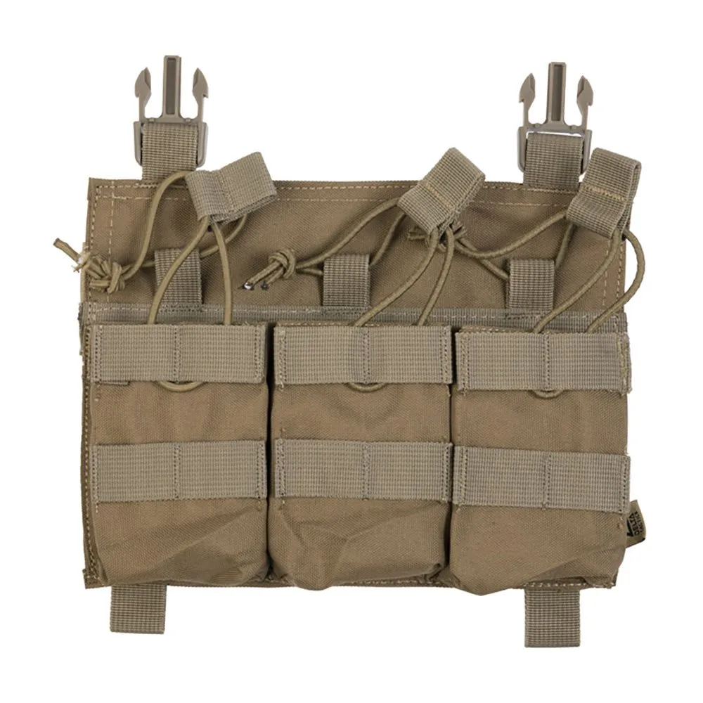 Delta Tactics preconfigured front panel with male clips with 3 quick-release pouches with a clamping rubber at the top for three AR, G36, AK.