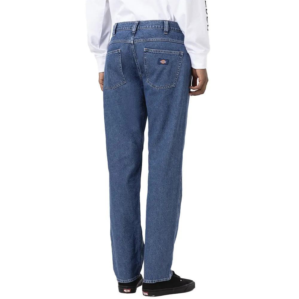 The Houston Denim pant is a relaxed cut, straight leg, regular waist 5-pocket jean with our iconic woven Dickies label on the back pocket.