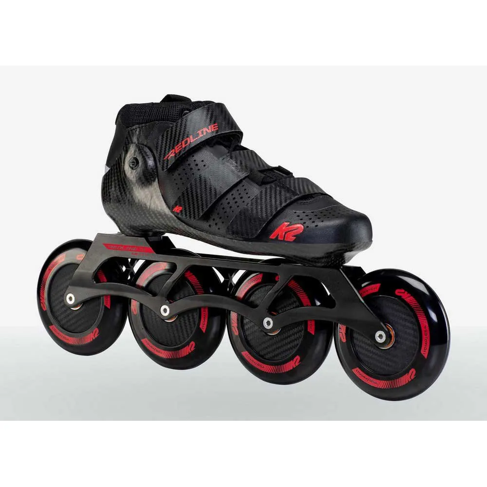 When the best simply isn’t good enough. Madshus, the world-renowned Nordic ski brand has teamed up with K2 Skates to bring endurance athletes the next evolution in lightweight, high-speed marathon skates. Introducing the NEW Redline 110, featuring a brand new anatomical and supportive chassis. The lightweight Redline carbon cuff and base – both modeled after the legendary shape and fit of the Madshus Redline ski boot - offer support and strength for your stride with an increased range of motion. Unparalleled comfort is achieved with the ventilated microfiber upper which is light, firm and snug with pre-molded high ankle support, 4 zones of macro closure and standard lace for infinite customizability. Finally, the Redline 110 features four of our NEW 110mm Flash Disc wheels – ultra high energy urethane with aerodynamic disc hubs you have to see, feel and hear to believe. The Redline 110 is truly a force to be reckoned with.