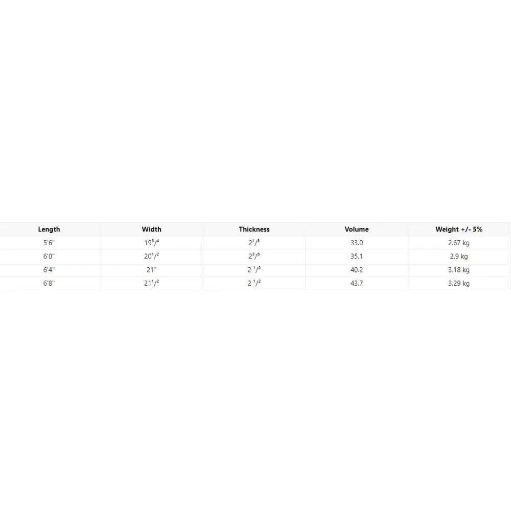 * Stable and Forgiving Ride: The board´s width and balanced volume distribution offer a secure and confidence-inspiring feel, ideal for surfers refining their pop-up, balance, and turns.
