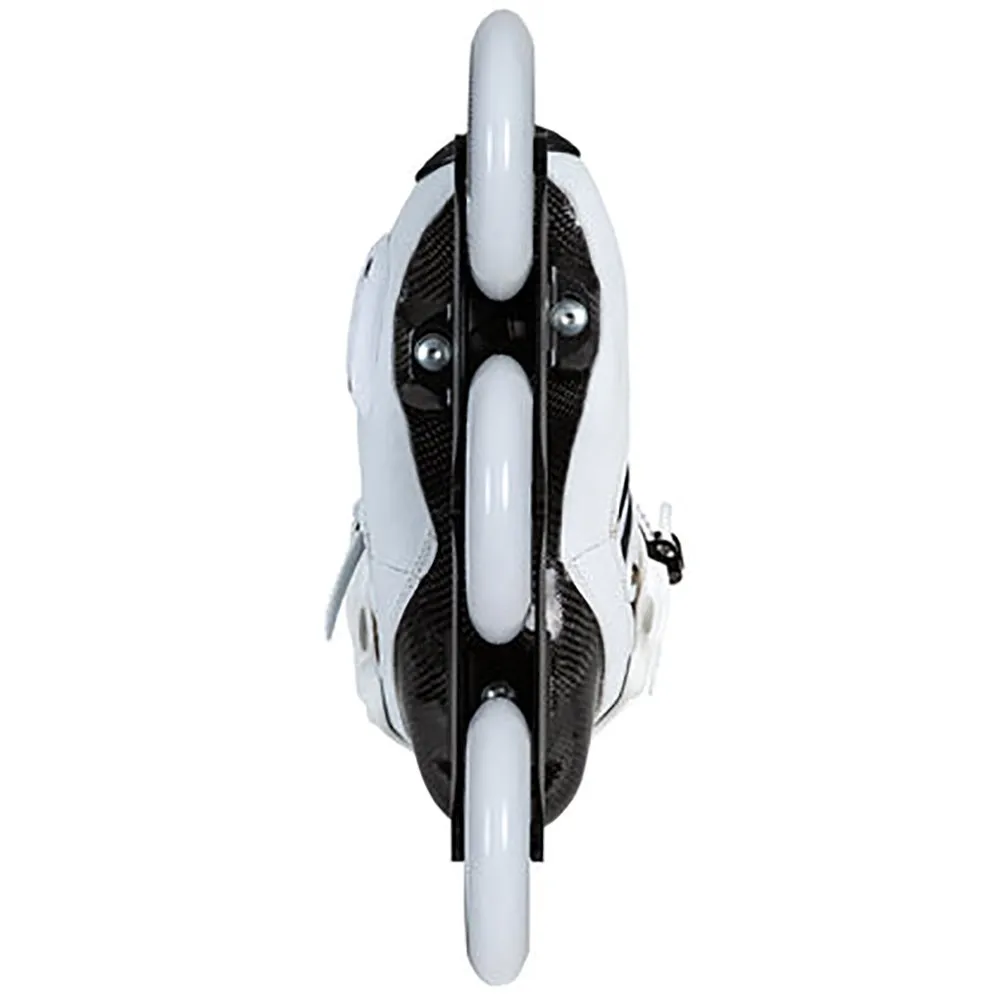 Featuring a sleek white design, these skates are visually appealing and sure to turn heads. The outer boot is constructed with a combination of high-quality materials, including carbon fiber, Kevlar, and fiberglass, providing excellent support, stability, and protection. This design ensures maximum power transfer and enhances the skater's agility.
