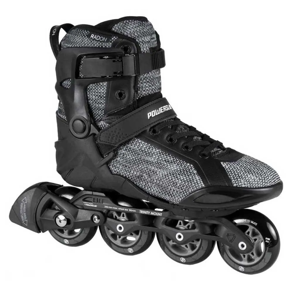 The POWERSLIDE Phuzion Radon Black White 80 inline fitness skate is the pinnacle of comfortable performance. The shell of the Phuzion Radon Black White 80 is made of reinforced glass fiber, providing a strong, stable base complemented with a cuff that delivers excellent support. This capable fitness skate also includes a Powerknit upper with TPU welded reinforcements to ensure a snug, comfortable fit. The POWERSLIDE Phuzion Radon Black White 80 is comfortable even on the longest of skating tours thanks to the fixed liner with dual density foams and a heel lock keeping your foot comfortably in place. Designed around the famous TRINITY 3-point mounting system, you get a low center of gravity and excellent power transfer while reducing vibrations. Complete with a lightweight, high-performance Elite cast aluminum frame rolling on 4x80mm POWERSLIDE Infinity wheels and WICKED ABEC 5 bearings, the Phuzion Radon Black White 80 is the ideal fitness skate mixing speed, comfort, performance...and a whole lot of fun.