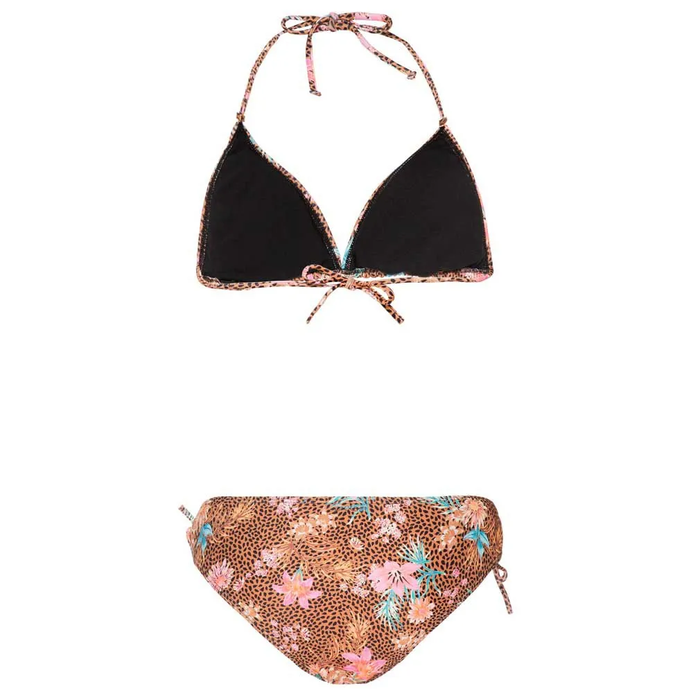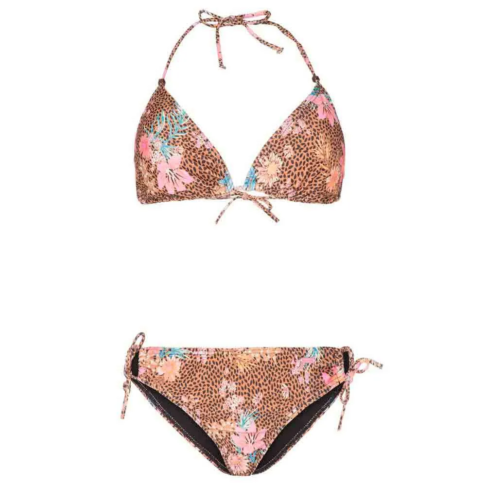 Introducing the Ale 21 triangle bikini by Protest. Simple and beautiful, this regular fit bikini is printed with colourful all over design. The fabric is also PFC-free in an effort to reduce the use of this chemical and thereby its harm to the environment. There are removable foam cups for added support when needed. There is beading at the straps of bikini top. Bound to become a summertime favourite, the Ale 21 by Protest.