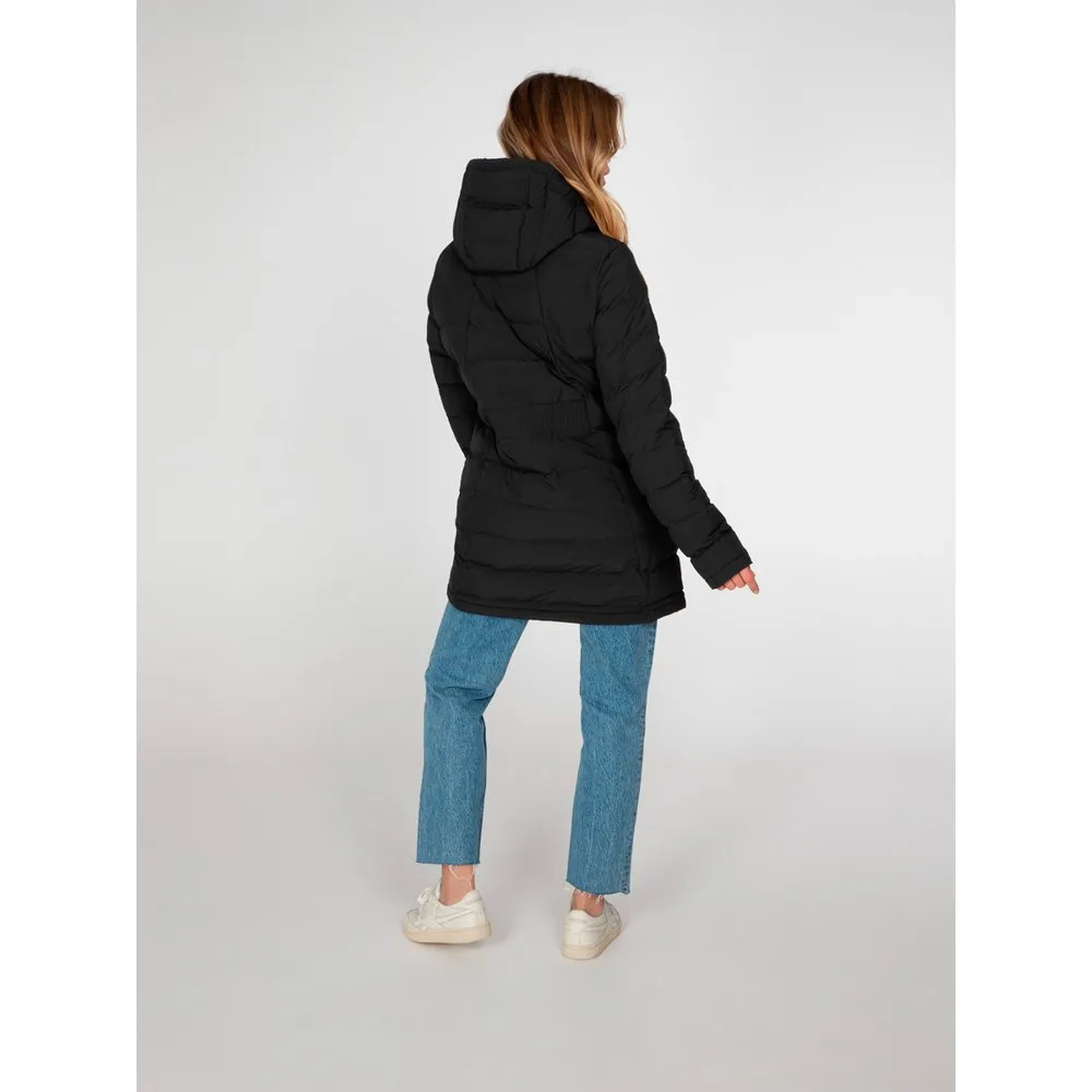 If you’re looking for the perfect outdoor jacket, you’ve found it. Introducing the Bloom by Protest. This great jacket is quilted. Quilting doesn’t just look good; it’s a way of creating additional warmth as the air trapped between the stitching forms an extra layer of insulation. As part of our Geotech series, this jacket has 10K water resistance meaning that water is dispersed away from the body while the outside surface is waterproof and windproof. This all means that you are staying warm, dry and comfortable. The length is extra long and the fit is tailored. There’s a high collar at the fixed hood. The side pockets are zippered to keep your essentials safe and dry. Just the jacket you are looking for, the Bloom by Protest A sleeker, snugger fit that contours your body without restricting movement. Stretch in fabric provides for added comfort.