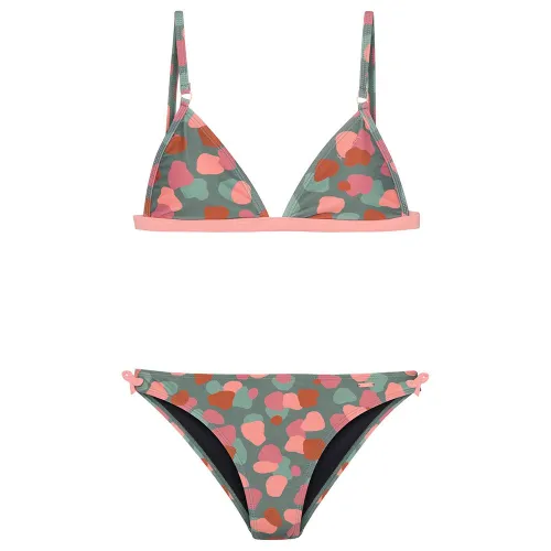 Regular bikini bottom, Triangle bikini top, PFC Free, Recycled material, Stretch, Regular fit, Camouflage, Regular waist, Back closure, Removable padding, UPF 50 protection.