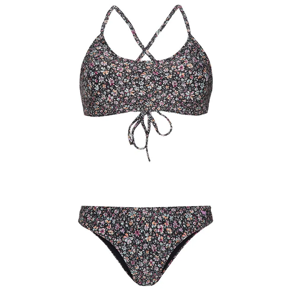 Bralette, Cheeky bikini Bottom, PFC Free, Regular fit, Floral, Regular waist, No cup, Back closure, Not wired, Not moulded, Removable padding, No push up, Quickdry cups, UPF 50 protection.