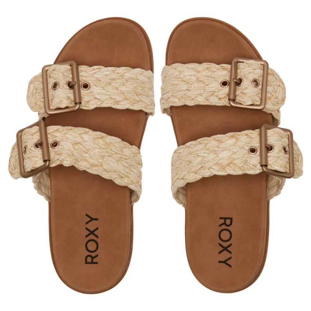 Recycled faux-leather footbed with anatomically contoured support, wrapped in synthetic leather and laser etched Roxy logo.