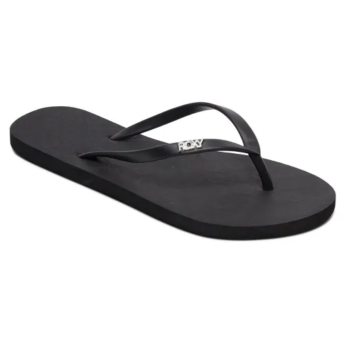 Thongs for women featuring a TPU upper with metal ROXY pin, and a textured rubber footbed.