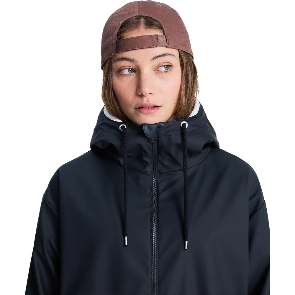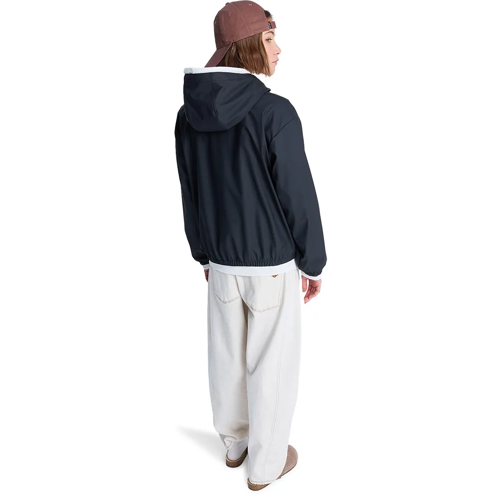 Fabric:Lightweight bonded rain proof polyester fabric (170 g/m2), Fit:Regular fit, short length, Hood:Bonded hood with contrasted colours, Pockets:Side pockets, Closure:Front zip closure, ROXY silicone badge, Drawcord at hood, Eyelets on underarms.