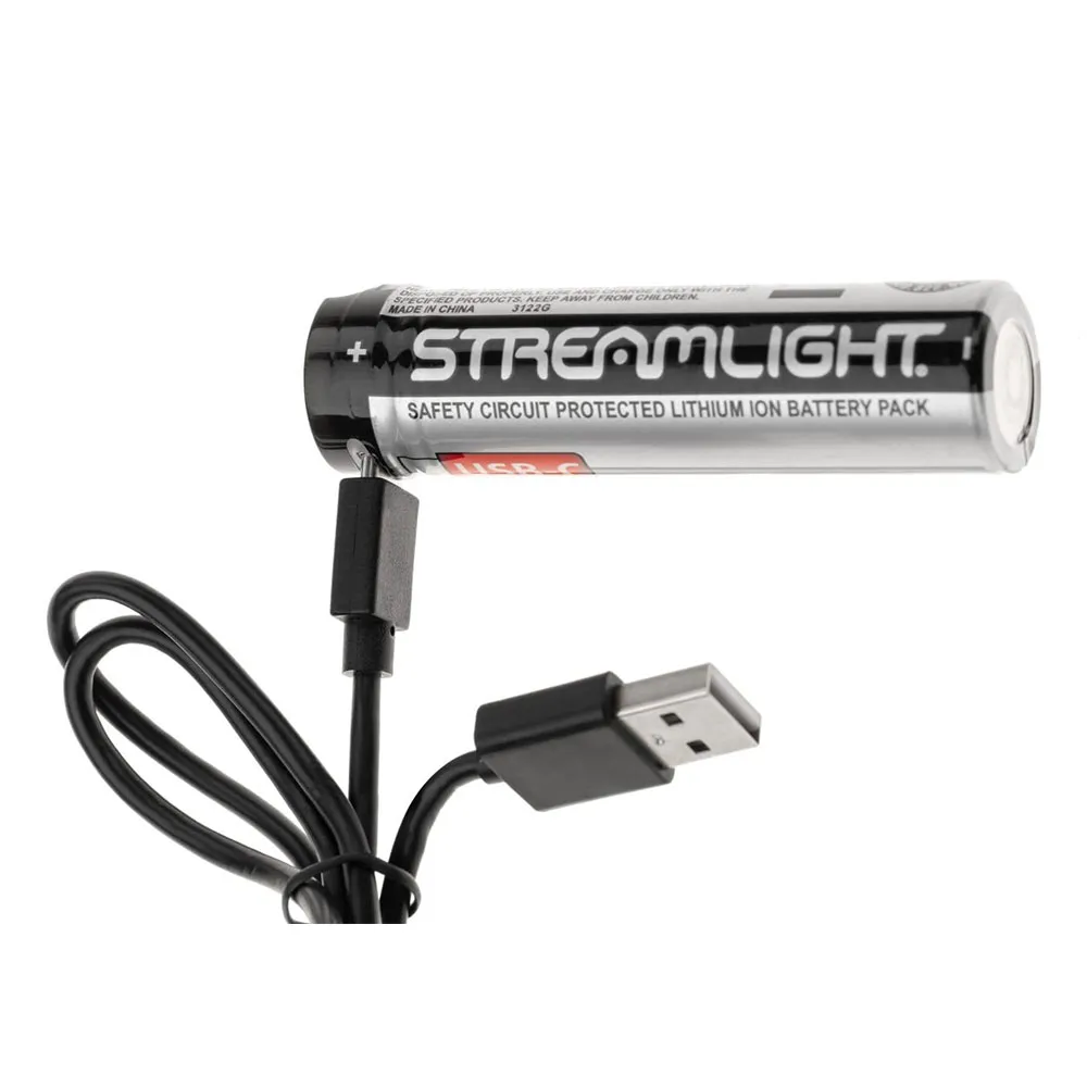 A single SL-B50 rechargeable battery provides power for the flashlight. The 4900mAh Li-Ion energy pack is protected from deep discharge with an onboard safety control. The battery recharges in about 6 hours using a USB Type C cable.