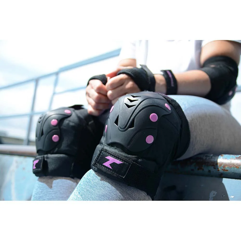 Skate with confidence using the TEMPISH TAKY 3-piece protective set. This essential kit for skaters includes wrist, knee, and elbow guards, providing robust protection for the most vulnerable areas. Featuring strong, anatomically shaped shells and a unique three-part construction, these protectors offer superior impact defense without restricting your movement. The soft, moisture-wicking inner fabric ensures comfort, while secure straps and a built-in sleeve keep everything perfectly in place. Stay safe and skate freely with this durable, comfortable set