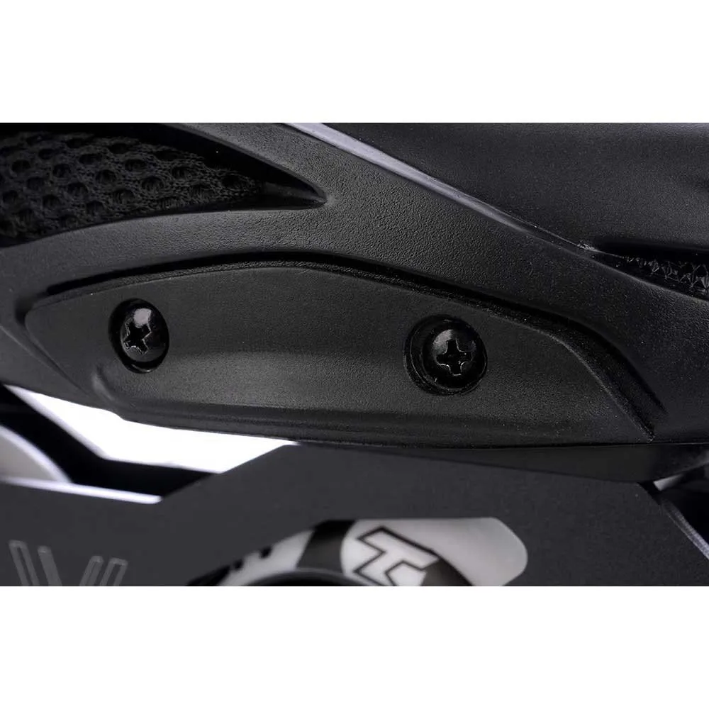 The skeleton of the skate is well ventilated - ventilation reaches the foot thanks to a ventilated liner, which contains holes around its entire circumference, including the tongue. A screw with a special nut and washer is used in the skate joint, thanks to which the cuff is replaceable and can be tightened if necessary, it also guarantees a longer service life than the articulated rivet. The upper metal self-locking buckle has a bend at the end for a better grip. The strap is inserted into the skeleton so that it does not catch on the second skate during slalom and freestyle, the buckle itself is protected against damage by the lower plastic boss. The instep strap is equipped with a single-stage micro buckle with very comfortable tightening and loosening thanks to the ratchet system.