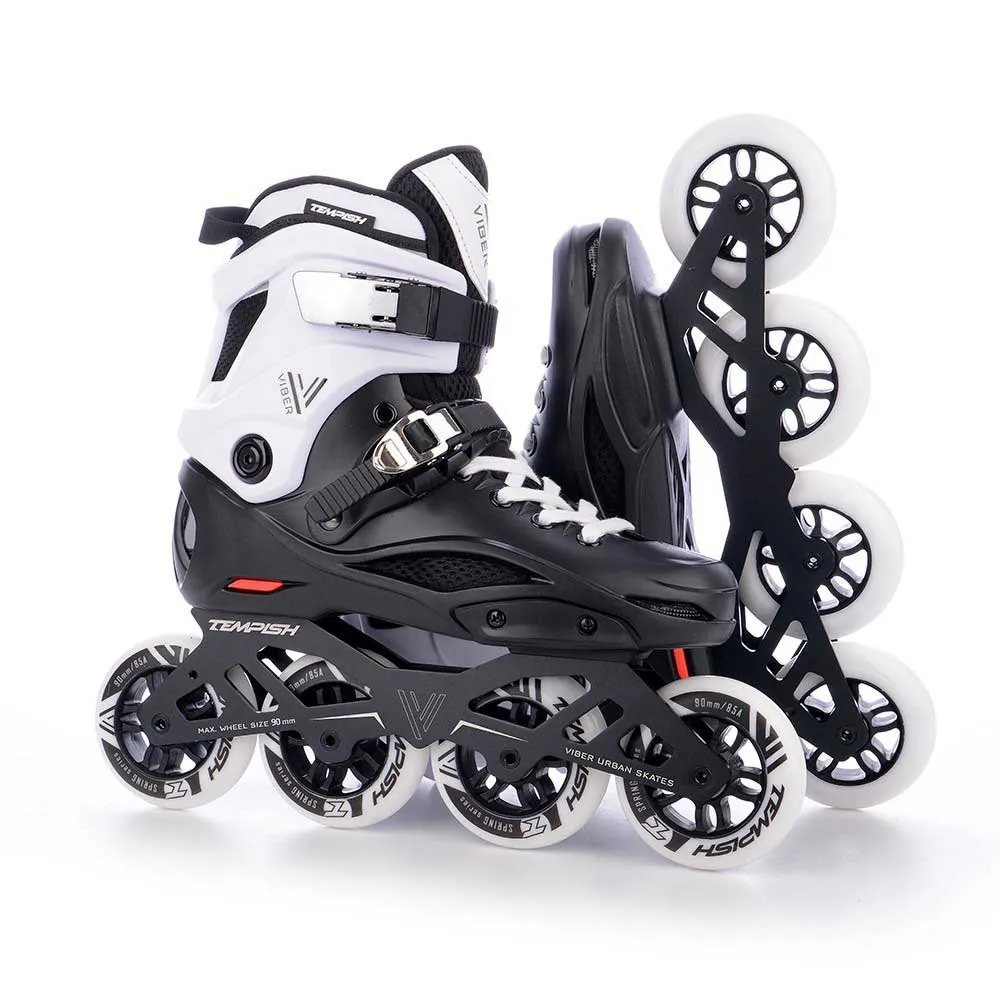 The TEMPISH VIBER 90 roller skates connect a freestyle hard shoe with a fitness chassis with 90 mm wheels. A special universal fitness hardboot model designed for both longer routes on the trail and a fast and playful ride around the city.