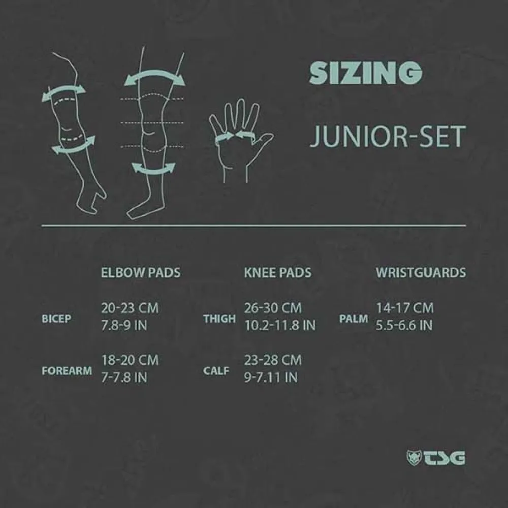 The TSG Junior protective set in black is a comprehensive body protection gear designed specifically for young skateboarders. This set includes knee pads, elbow pads, and wrist guards, offering full coverage and protection for the most vulnerable parts of the body during skateboarding.
