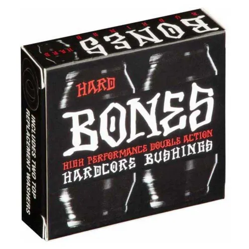 Revoluciona tu patinaje y desbloquea un rendimiento sin igual con BONES Hardcore Bushings. Diseñados para patinadores que exigen precisión, estabilidad y respuesta inmediata, estos bushings son una mejora significativa para cualquier configuración de patineta. Despídete de la sensación descuidada de los bushings tradicionales y del frustrante período de "rodaje". Los BONES Hardcore Bushings están diseñados para ofrecer una sensación consistente y confiable desde el primer momento, brindándote la confianza para llevar tu patinaje al siguiente nivel. Ya sea que estés cargando a altas velocidades, encajando en grinds técnicos o aterrizando impactos fuertes, estos bushings brindan el soporte sólido que necesitas.