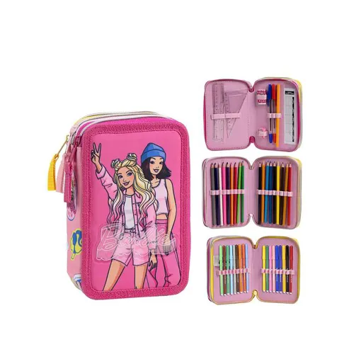 El exterior es donde la magia de Barbie realmente brilla. Con un diseño deslumbrante y vibrante, este estuche de lápices es una declaración audaz de diversión y moda. Es un accesorio que permite a tu hijo expresar su personalidad y su amor por uno de los íconos más queridos del mundo. La impresión de alta calidad y la atención al detalle lo convierten en un artículo destacado que será la envidia del aula.