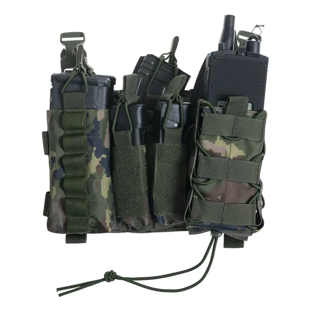 Panel frontal preconfigurado Delta Tactics con clips macho con bolsillos de liberación rápida para 3 cargadores tipo AR, G36, AK.