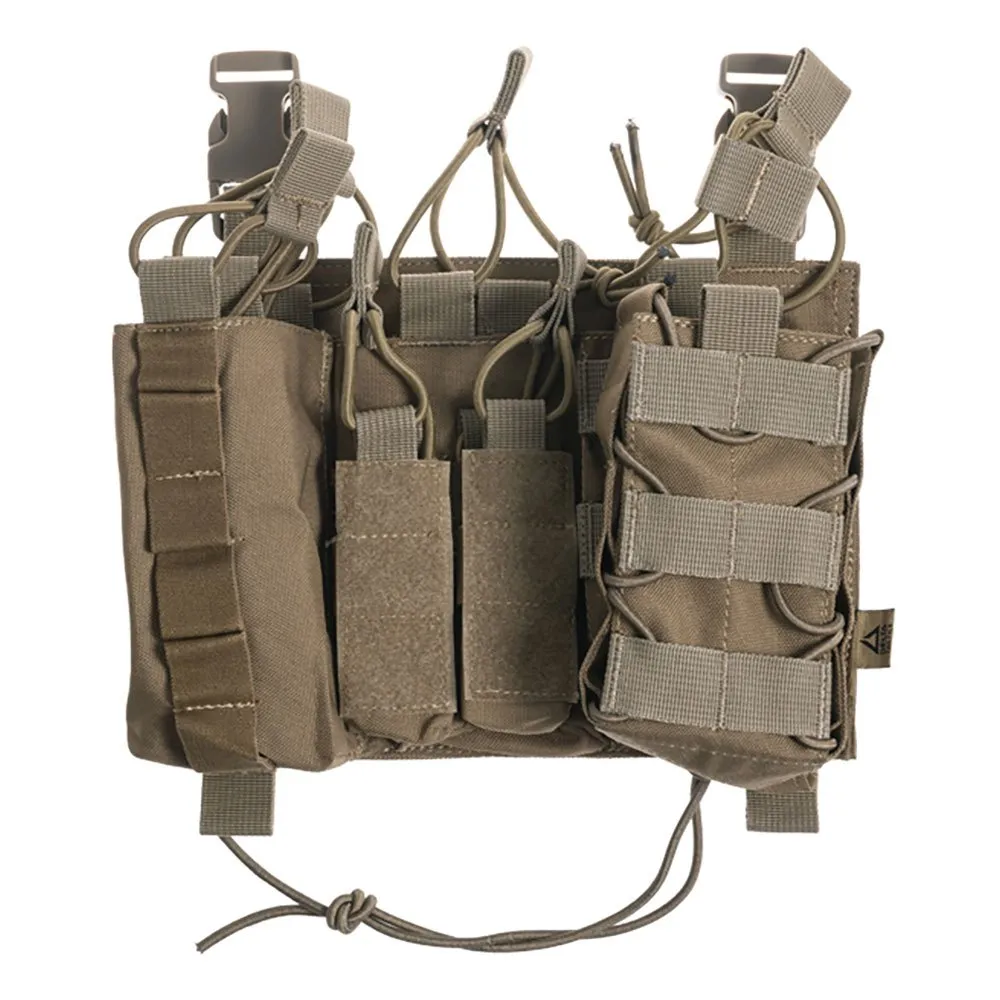 Panel frontal preconfigurado Delta Tactics con clips macho con bolsillos de liberación rápida para 3 cargadores tipo AR, G36, AK.