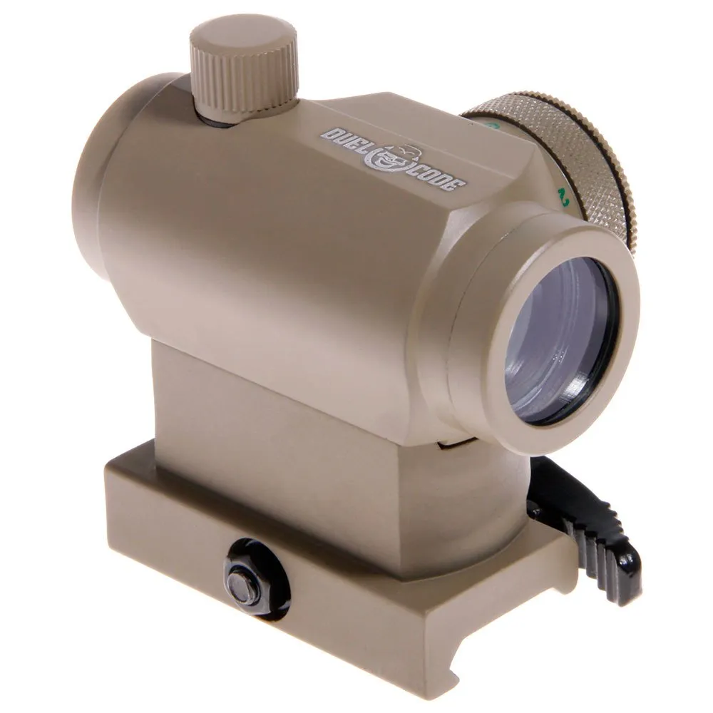 Construida para resistir los rigores del juego intenso, la Duel Code G2 cuenta con un cuerpo completo de aluminio robusto y ligero. Esta construcción resistente protege la óptica interna de golpes, caídas y el abuso general de un juego de airsoft de ritmo rápido. Se incluye una montura de perfil alto vital, una característica esencial para las configuraciones modernas de airsoft. Esta montura elevadora, o extensión, eleva la óptica a la altura ideal para una posición de cabeza cómoda y natural, especialmente cuando se usa protección facial y ocular voluminosa. Esto elimina la necesidad de estirar el cuello de forma incómoda, lo que permite una soldadura de mejilla más estable y consistente para una mayor precisión disparo tras disparo.