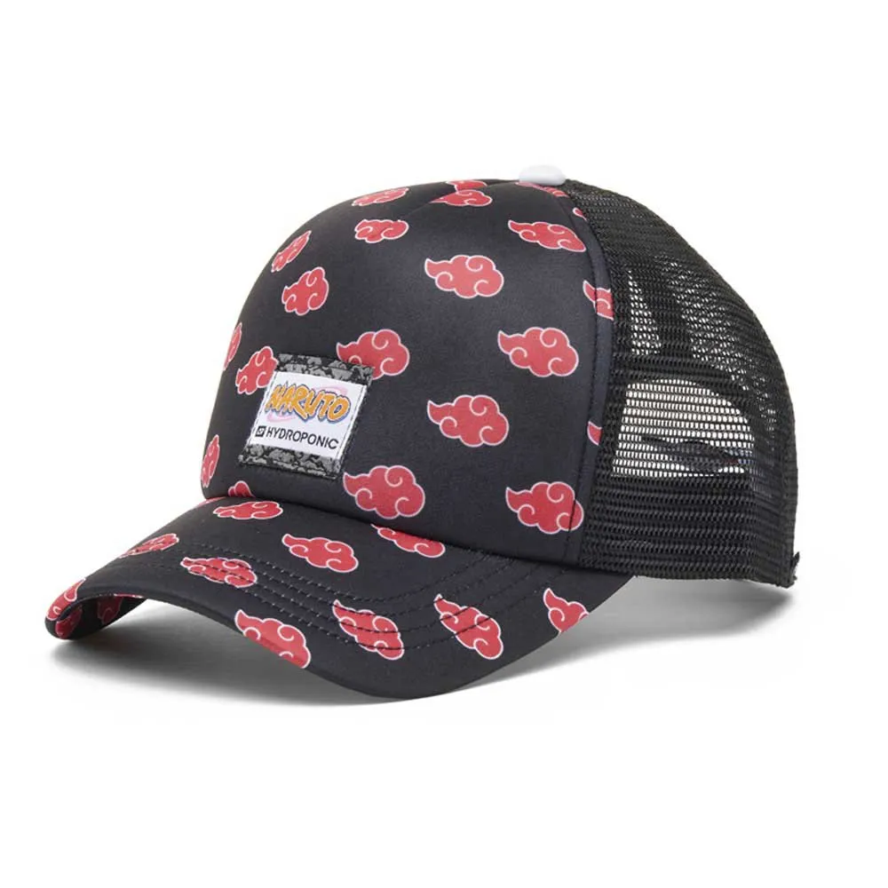Gorra de malla snapback de 5 paneles de la Colaboración Oficial Naruto X Hydroponic con corte bajo, visera curva y un especial estampado digital de Naruto con la nube roja que representa el símbolo de la lluvia de sangre derramada en la aldea de Amegakure durante las Guerras Ninjas.