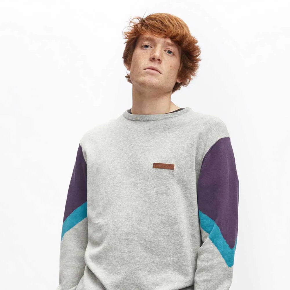 El Hawk es un jersey de punto suave con cuello redondo, confeccionado en galga 12 y con paneles de contraste teñidos en hilo para un look invernal clásico y elegante.