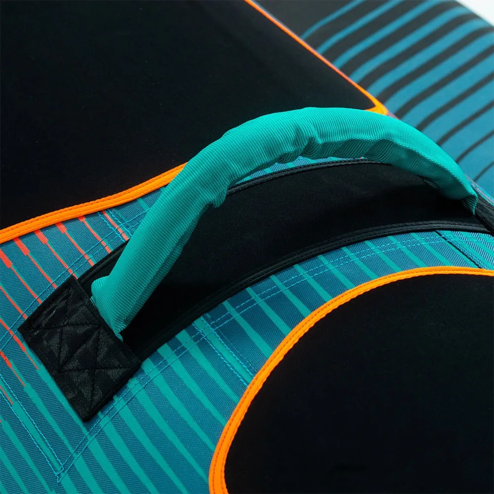 Jobe Chaser. Buen producto, desliza bien por el agua y es muy estable. Cuando se montan dos personas de peso hay que tener muy inflados los estabilizadores, porque si no la caída es segura.